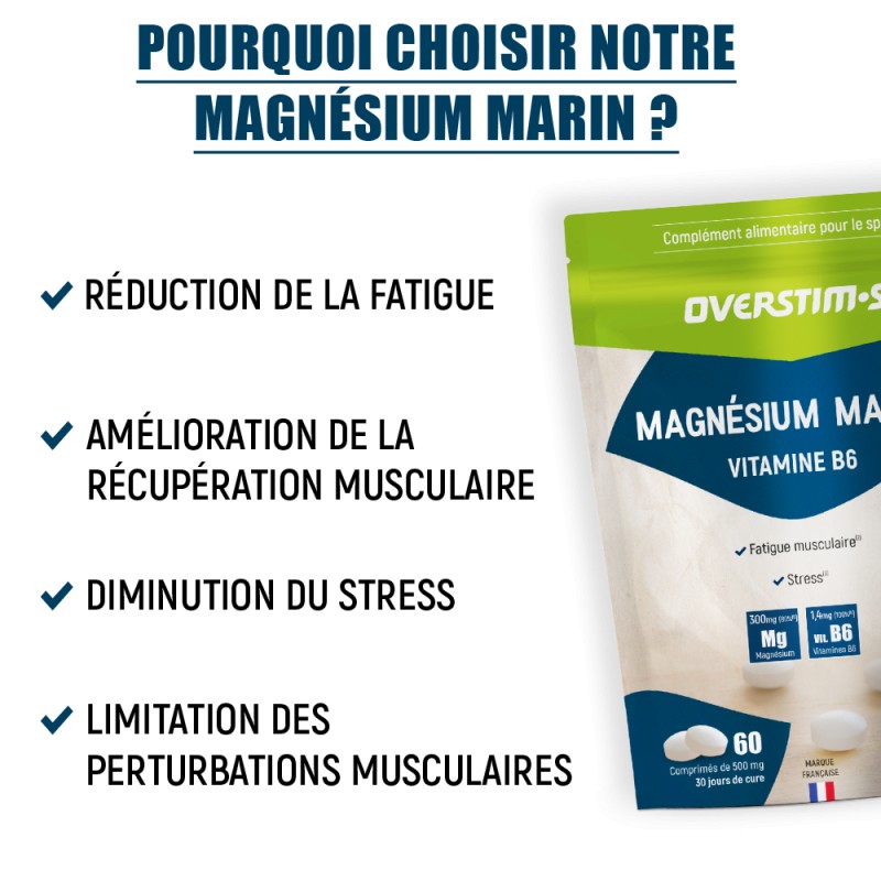 Le Magnésium Marin OVERSTIM.s favorise une récupération musculaire rapide et efficace après l'effort, ce qui est vital pour les sportifs pratiquant des entraînements fréquents et intenses.