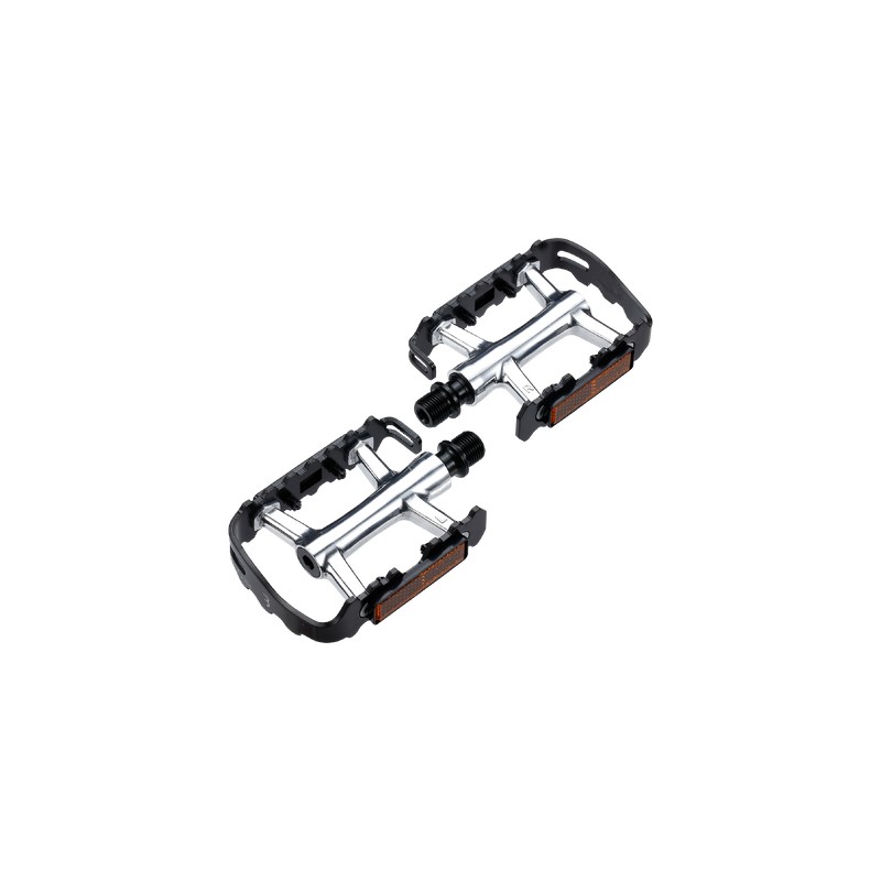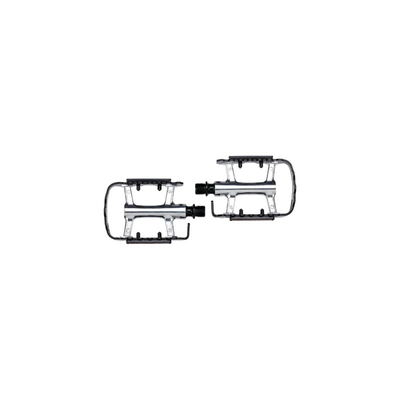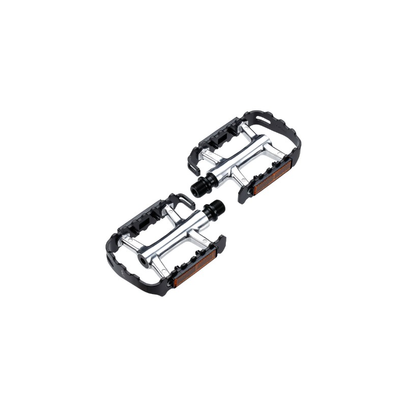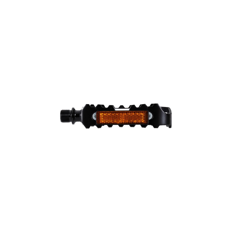 Une pédale en aluminium très solide et très résistante. Le corps en aluminium est très solide mais léger, tandis que la cage en métal permet à vos pieds de reposer sur une grande surface. Cette dernière est recouverte d'un motif spécial qui maintient vos pieds sur la pédale, pour que vous obteniez autant d'adhérence que possible. Et enfin, des réflecteurs des deux côtés de la pédale veillent à ce que les autres personnes vous voient quand vous pédalez dans l'obscurité. La sécurité avant tout !